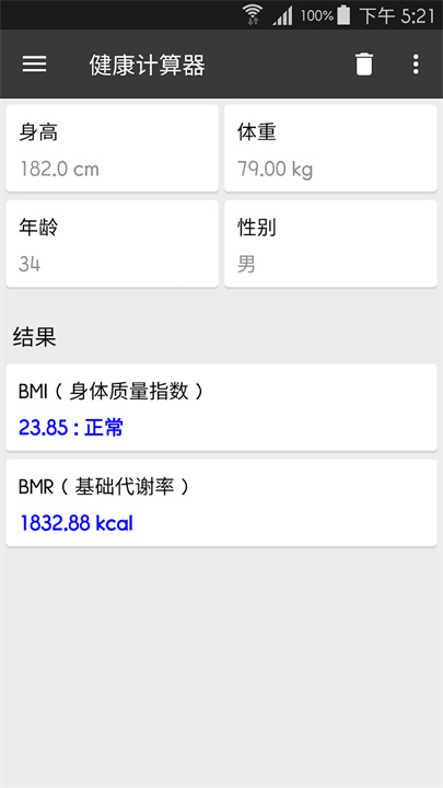 健康计算器:测量BMI和BMR。