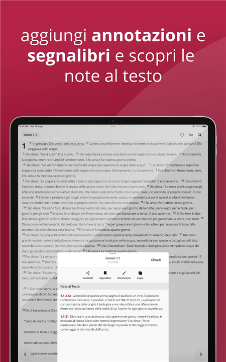 • The digital interface integrates the official notes and annotations from the CEI editions, providing critical historical and theological context to the verses.