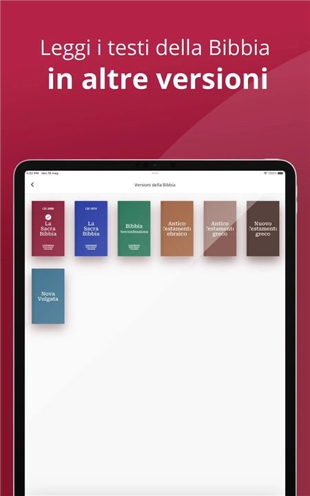 • For academic and scholarly pursuits, the app features the Old Testament in its original Hebrew and Greek, the New Testament in Greek, and the official Latin Nova Vulgata.