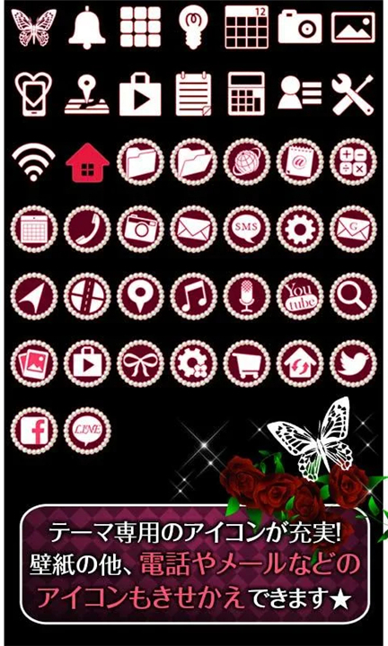 • You must first install the +HOME launcher from the store before the Gothic Roses theme can be officially applied to your interface.