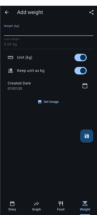 • Tap image to set it in foods page