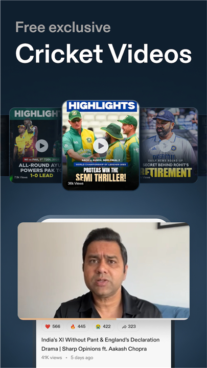 • Relive every boundary and wicket with curated match highlights and viral video content.