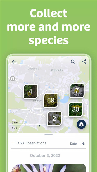 Keep track of all your plant finds with Flora Incognita's observation list. Easily access your collection of identified plants and see where you found them on the map. Watch as your knowledge about wild plants grows and share your discoveries with friends and fellow enthusiasts.