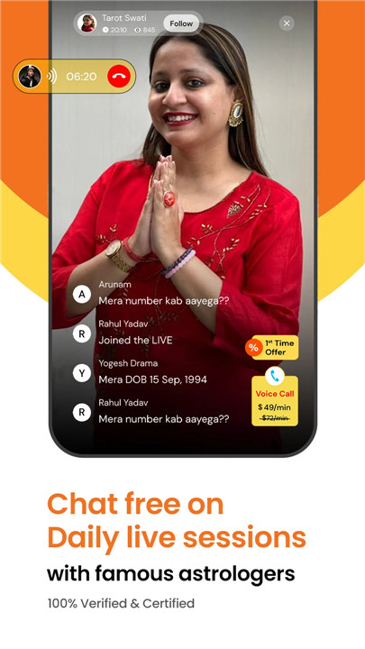 To get started, simply recharge your wallet, connect with an astrologer, and discover solutions for all your astrological inquiries. It couldn't be easier! Additionally, we offer a special promotion for new users, allowing them to enjoy their first call for FREE!