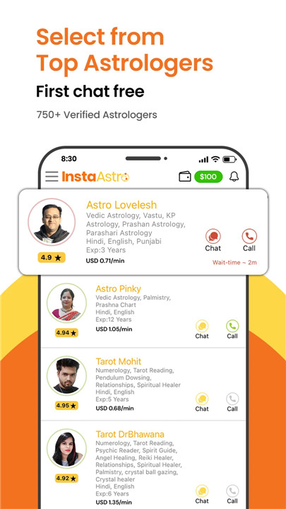 Welcome to the InstaAstro App! Enjoy your first call or chat with us for free!