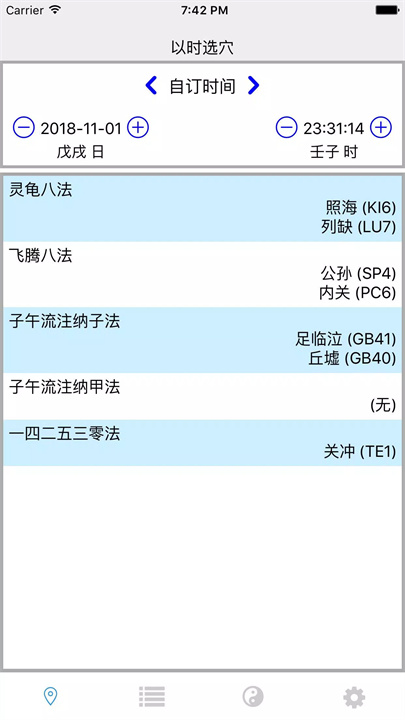 [子午灵龟]是一款专注于择时和选穴的应用,结合灵龟八法、飞腾八法、子午流注纳子法及子午流注纳甲法,帮助用户精准掌握时空选择,提升生活中的能量调理。应用提供三种时间选择方式:系统时间、平太阳时和真太阳时,确保不同需求下的精准择时。精准择时,调整能量,提升生活质量。