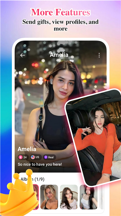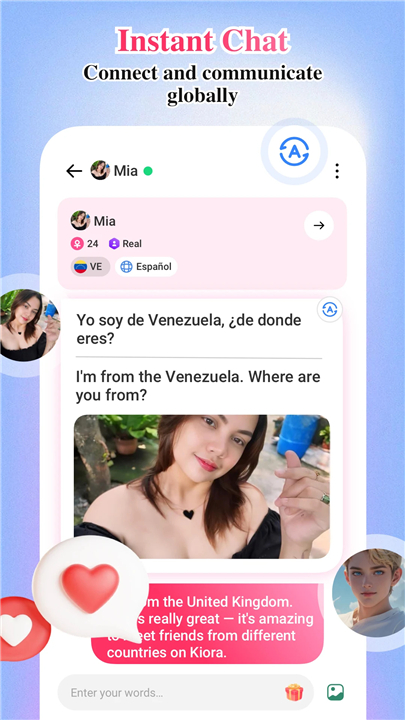 • Unique features such as gifting and live translation to help you share emotions and understand each other instantly.