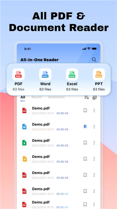 Manage files with PDF Reader - All PDF Scanner. View, edit, and scan documents or convert images to PDF. Works with Word, Excel, and PPT. Download the latest version of PDF Reader - All PDF Scanner to enjoy new features and updates immediately!