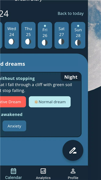 The dream journal feature allows you to easily record your dreams either by typing or using voice dictation. Whether you're dreaming of flying, rain, food, or your ex-partner, the app provides endless interpretations for these themes and more. By keeping a detailed personal journal, you can track and understand your recurring dreams, nightmares, and lucid dreams.