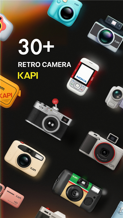 • KAPI Cam is an innovative mobile application designed to transport your digital captures back to the iconic aesthetics of the late 20th and early 21st centuries.