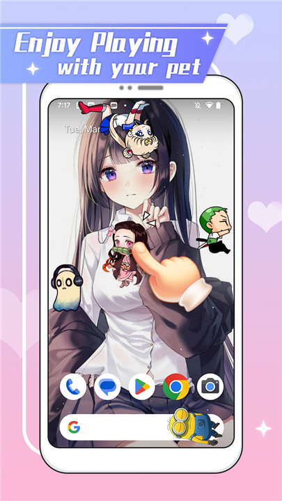 • Imagine your device screen bursting with vibrant personality as charming anime-style companions spring to life.