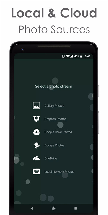 云服务集成:从多种云存储平台(如Google Photos、Dropbox、Google Drive、OneDrive)轻松导入照片,方便您随时访问。