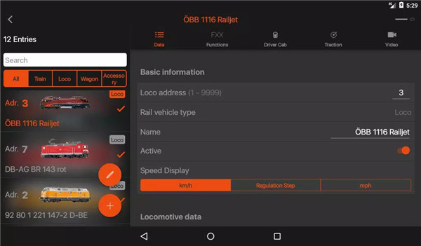 The Z21 App lets you manage your entire locomotive library in one place. You can add images for each locomotive for better organization and easy access.