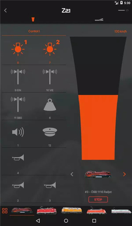 With the Z21 App, you no longer need to memorize complicated key combinations to control the functions of your digital locomotives. Instead, the app features simple, intuitive function symbols that represent the different locomotive features, such as lights and sounds. With just one touch, you can activate or deactivate any function.
