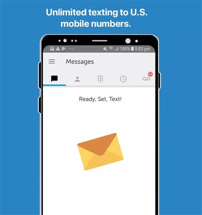 Send and receive unlimited text messages to any 10-digit U.S. phone number, no app download required for your contacts.