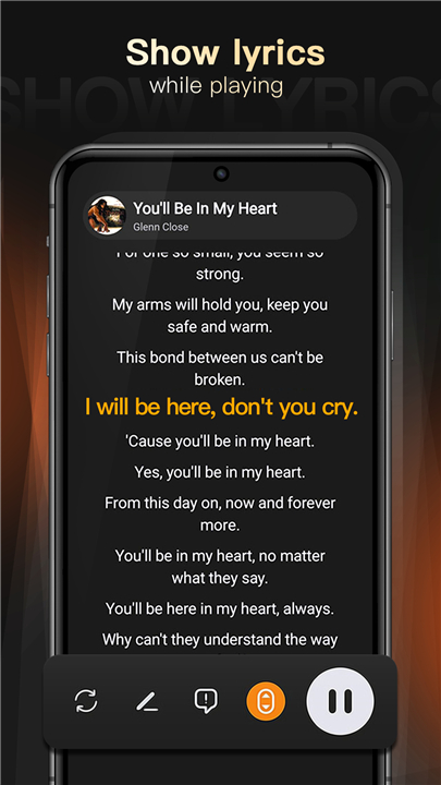 • As the music plays, the synchronized lyrics scroll seamlessly, letting you sing along with ease.