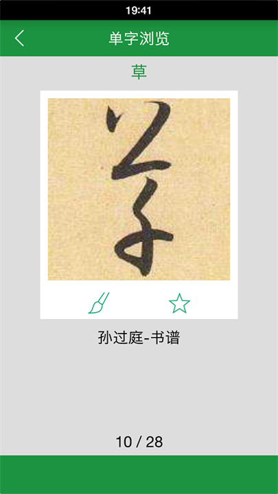 草书字典是一款专为书法爱好者和研究者设计的应用,汇聚了古今草书大家的经典作品。该应用收录了陆机的《平复帖》、王羲之的《十七帖》、怀素的《自叙帖》、孙过庭的《书谱》、智永的《草书千字文》、张旭的《古诗四帖》等众多珍贵资料,为用户提供了一个全面的草书学习与欣赏平台。
