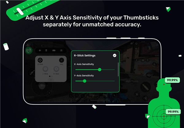 Mantis offers the flexibility to independently adjust the vertical and horizontal sensitivity of your thumbsticks, providing enhanced customization—ideal for shooter games.