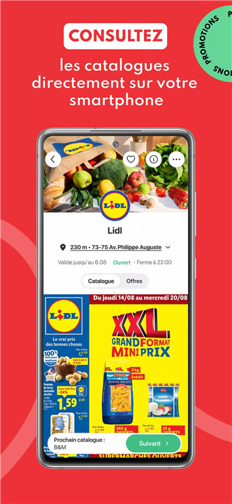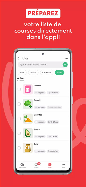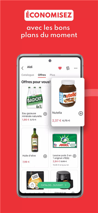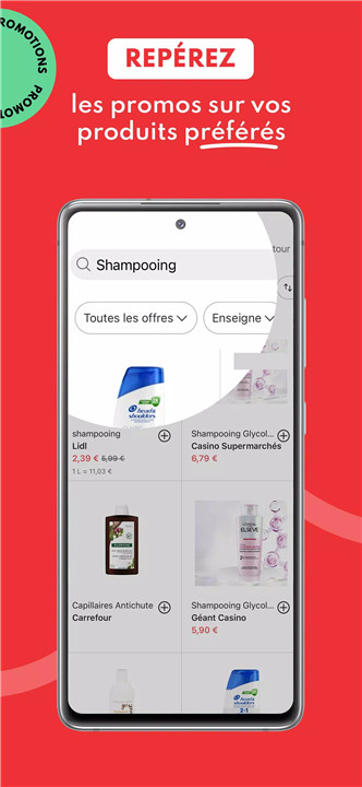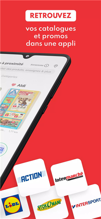 You can find offers from popular retailers like Carrefour, Lidl, Auchan, Leclerc, Monoprix, Conforama, Cora, and more, all in one app.