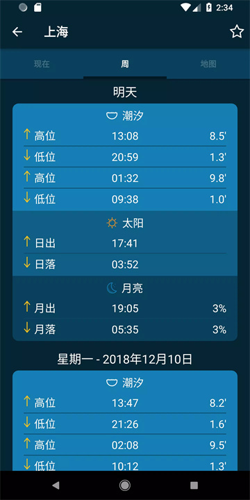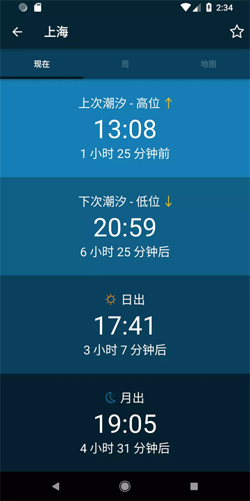 它提供潮汐涨落的时间、潮汐表、潮汐图、预测信息,以及日出、日落、月出和月落的时间。