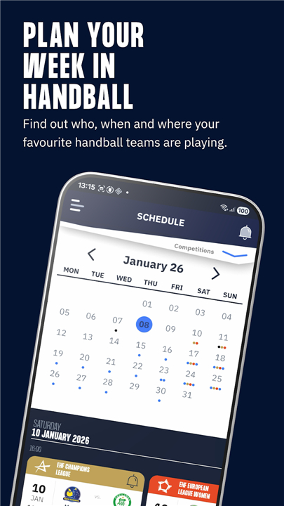 • Comprehensive Coverage: Follow all matches across Europe’s top competitions, including the EHF EURO, EHF Champions League, EHF European League, and exciting Beach Handball.