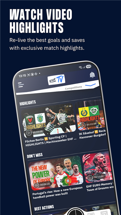 • Behind-the-Scenes Access: Dive into in-app stories and the EHFTV section for unique content, including entertaining clips and 'Don't miss' moments.