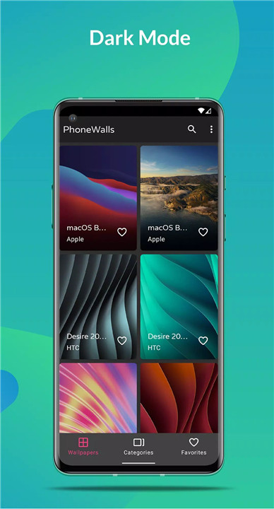 Simply tap the heart icon to save your favorite wallpapers in one place, making it easy to access them later. Whether you're collecting designs to switch between or curating a special set of wallpapers, PhoneWalls makes it simple to organize your favorites.