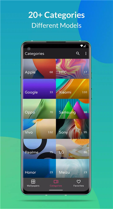 With over 4500 wallpapers from more than 30 smartphone brands, PhoneWalls brings you the best collection of images to choose from. Explore wallpapers from well-known brands like Apple, Samsung, OnePlus, Google, Xiaomi, and many more. You can find wallpapers from every popular smartphone OEM, so your phone will always feel up-to-date with the latest releases.