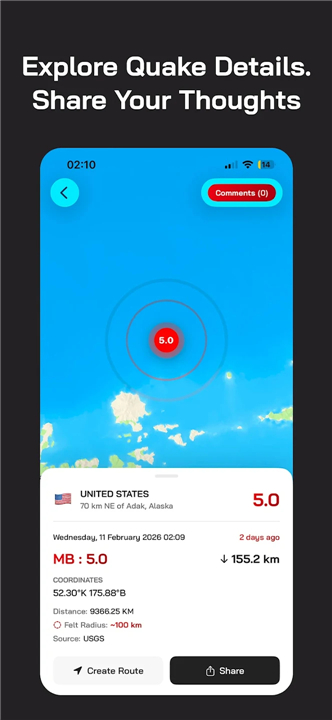 • Access a live feed of seismic activity powered by leading global agencies like USGS and EMSC.
