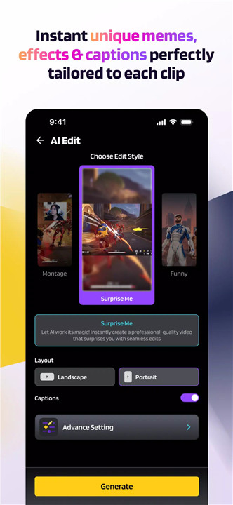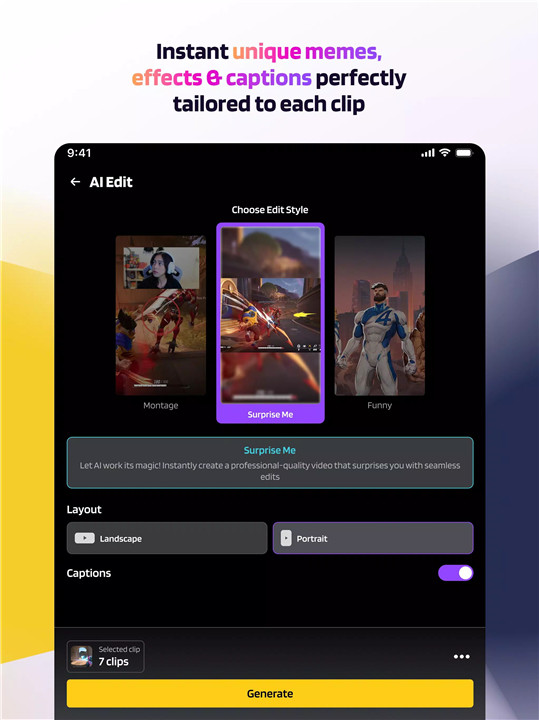 Once highlights are generated, Eklipse’s AI-powered editor instantly transforms them into engaging, shareable clips. Add memes, sound effects (SFX), visual effects (VFX), and captions with just a few taps. This allows you to create eye-catching content that stands out on social media platforms without spending hours editing.