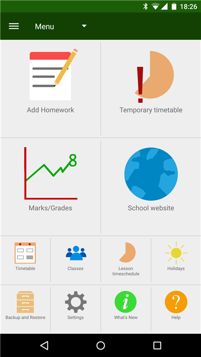 • Short tap on a lesson in the timetable view allows quick homework entry.