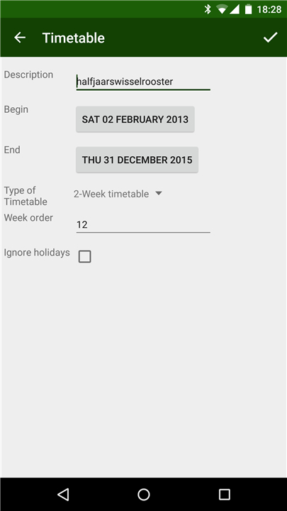 • Swipe left or right in the timetable view to move forward or backward through days or weeks.