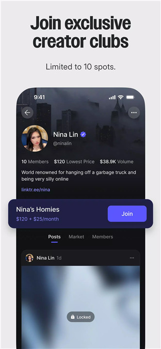 Each creator can offer only 10 exclusive, serialized memberships—once they’re gone, they can only be bought from current members on the marketplace.