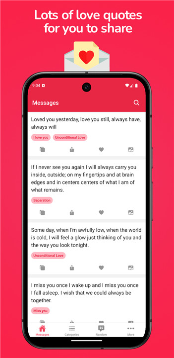 A: The app features a wide range of messages, including love declarations, expressions of admiration, notes of appreciation, and sweet, uplifting messages. These are thoughtfully organized into categories to help you find the exact sentiment you want to convey.