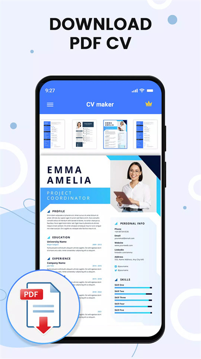 专业简历模板:提供多种设计精美、视觉吸引力强的简历模板,帮助用户清晰地展示个人资历、技能和工作经验。