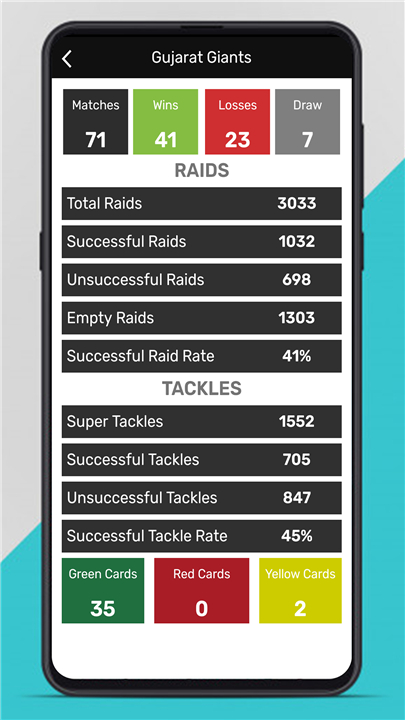 - Access individual player stats, including raid points, tackle points, and super performances.