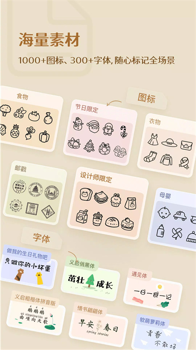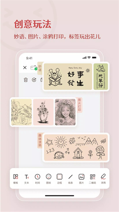 提供多种字体、符号、图标、图片和涂鸦选项,个性化标签设计,增强生活趣味。
