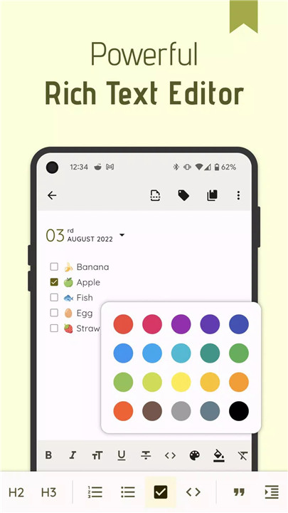Spooky’s rich text editor is equipped with over 25 editing options that allow you to customize your entries effortlessly. From basic formatting like bold, italic, and underline to more advanced features such as lists, quote blocks, and code snippets, you have everything you need to structure and style your content. Add images, links, or even tags to enrich your writing experience.