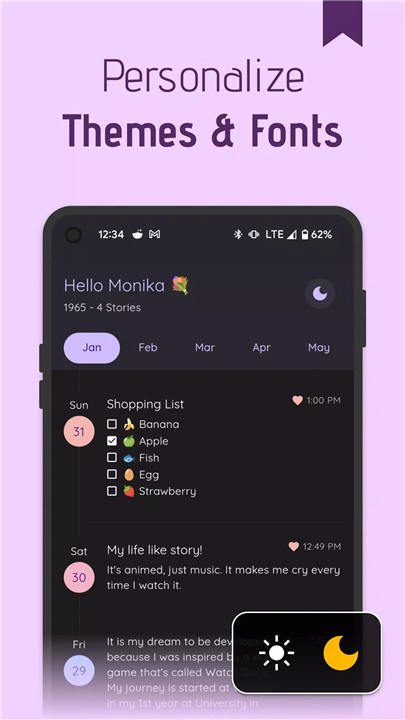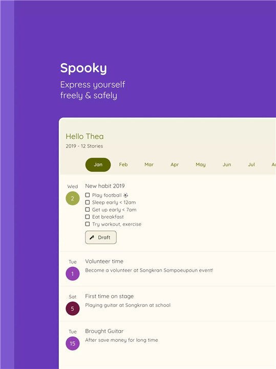 Never worry about losing your precious memories. Spooky allows you to back up your data to Google Drive, ensuring that your entries are safely stored in the cloud. Restoring your data is just as easy, giving you peace of mind no matter where you are.