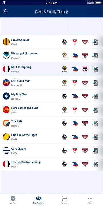 • Challenge each other to see who can make the most accurate predictions, and prove your knowledge of AFL!