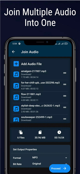 You can join up to 5 audio files at a time using the free version. Upgrade to merge unlimited files.