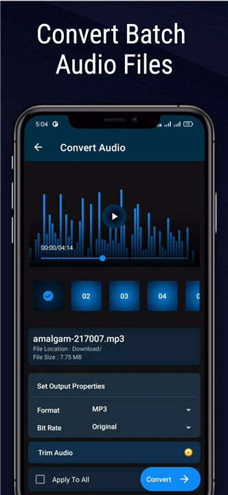 · Convert any audio file to your desired format: MP3, WAV, AAC, M4A, and more.