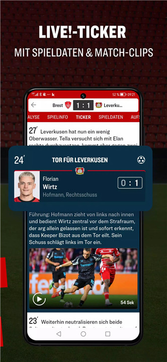 Experience the quickest updates with our live ticker, featuring live commentary, pitch photos, video evidence, and table changes. Customize your push notifications for your preferred fixtures, leagues, and teams via the push center.