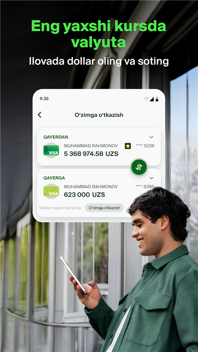 • Currency Exchange: Exchange UZS and USD at favorable, real-time rates whenever you need.