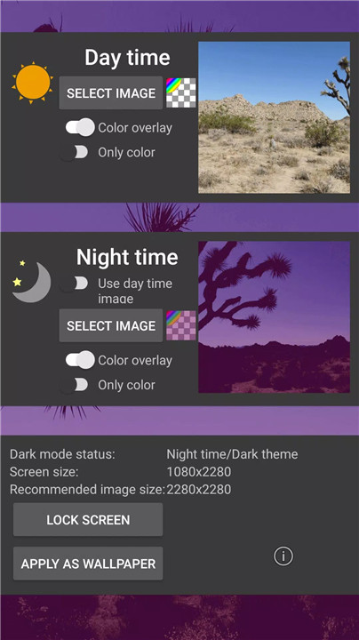 Users can customize their wallpaper with two distinct images: one for the light theme mode and another for the dark theme mode. This ensures that your device's wallpaper adapts intelligently based on the system-wide theme settings. Whether you prefer vibrant hues during the day or soothing dark tones at night, Dark Mode Live Wallpaper ensures your device reflects your preferred aesthetic.