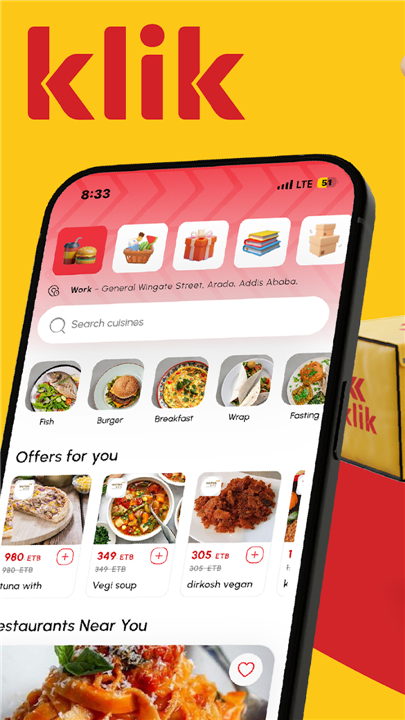 A: Getting started with klik is quick and user-friendly. Simply download the app on your smartphone, register using your phone number or email address, and set up your delivery address. After a brief verification process, you can browse available categories, select your items or meals, place your order, and pay using your preferred method. In just a few taps, your order is confirmed and you’re on your way to enjoying hassle-free delivery.