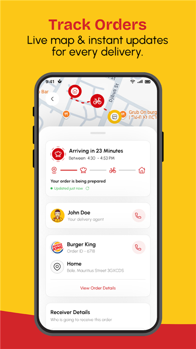 • Live Tracking – Follow your delivery from pickup to doorstep.