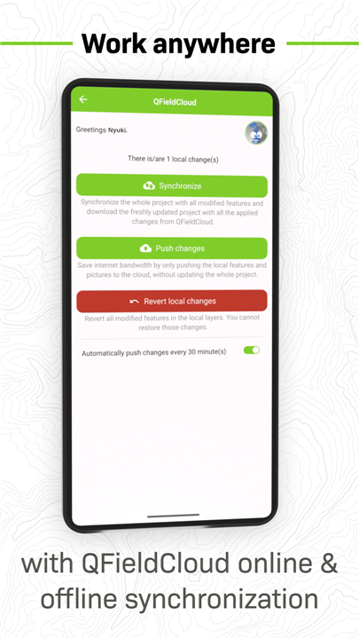 • Optional synchronization through QFieldCloud