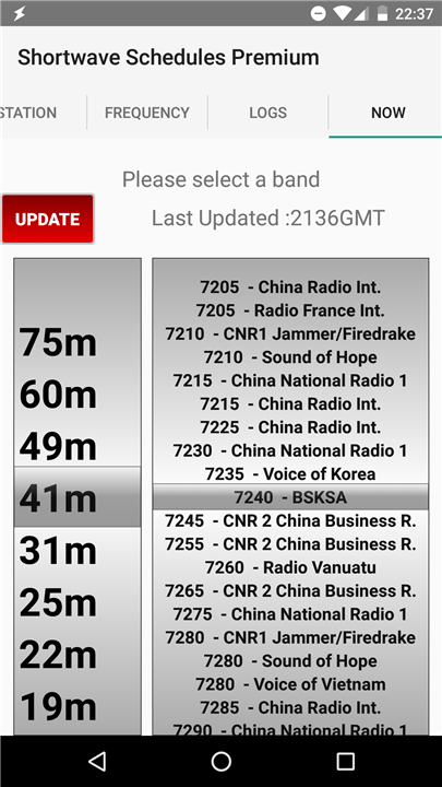 • "Now" Feature – See which stations are currently on air in each shortwave band.