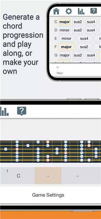 您可以根据自身需求,自由选择想要练习的指板部分,定制专属的学习体验。您可以任意选取希望在指板特定位置进行练习的和弦,并依据个人节奏进行反复演练。此外,您还可以利用和弦进行生成器工具,随心所欲地创作属于自己的歌曲,并即时学习如何进行演奏。Fretonomy会对您的学习进度进行详细统计,方便您随时查看,同时也支持与好友共享成果。